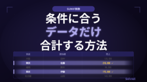 - SUMIF関数:条件に合う行だけを合計できる関数。「東京支店の売上だけ合計したい」「特定の担当者の数字を出したい」という場面で大活躍します。